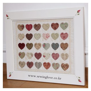 고노사나에 30종 원단을 하트 아플리케 작업한