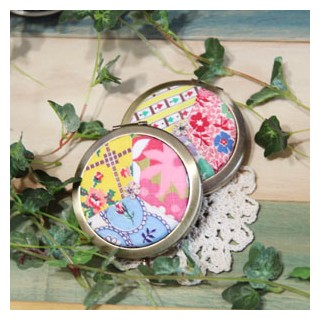 피드색 원단과 모티브레이스로 꾸민 청동거울이에요 ^^~